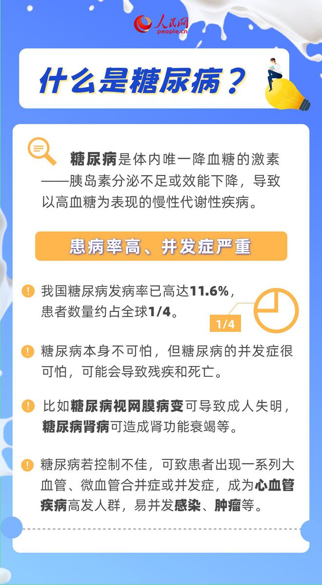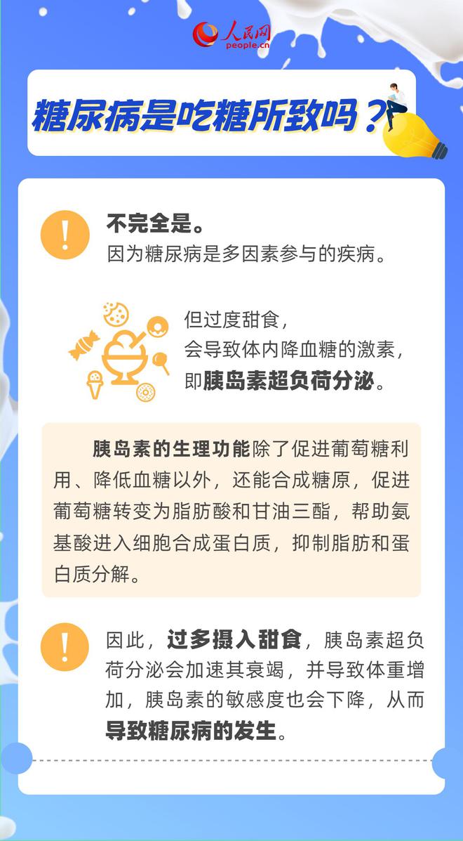 每年11月14日为联合国糖尿病日,今年的宣传活动口号是“知晓风险 知晓应对”。糖尿病是吃糖导致的吗?