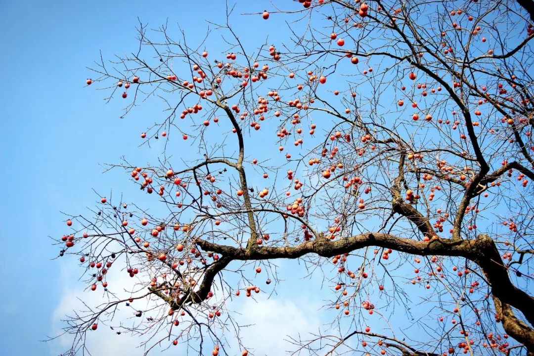 霜降前后,柿子也完全成熟,皮薄、肉鲜、味美,仿佛把积蓄了一年的能量都凝结在红艳艳的身体里,在万物枯萎的季节,柿子却拼了命的耀眼。